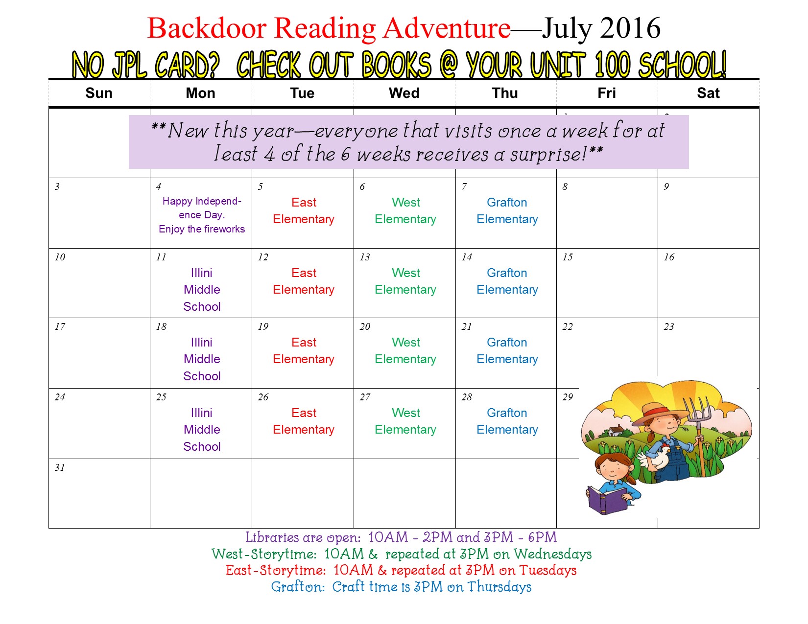 SRC Backdoor reading adventure July 2016 calendar https://www.jerseyvillelibrary.org/src-backdoor-reading-adventure-july-2016-calendar.jpg/view https://www.jerseyvillelibrary.org/src-backdoor-reading-adventure-july-2016-calendar.jpg/@@images/image-1200-ac83dd1bce950517b8117f93a525027b.jpeg SRC Backdoor reading adventure July 2016 calendar src backdoor reading adventure july 2016 calendar.jpg image/jpeg Type image/jpeg Dimension Dimension 1650x1275 Size File size 332.9 KB Download View full-size image